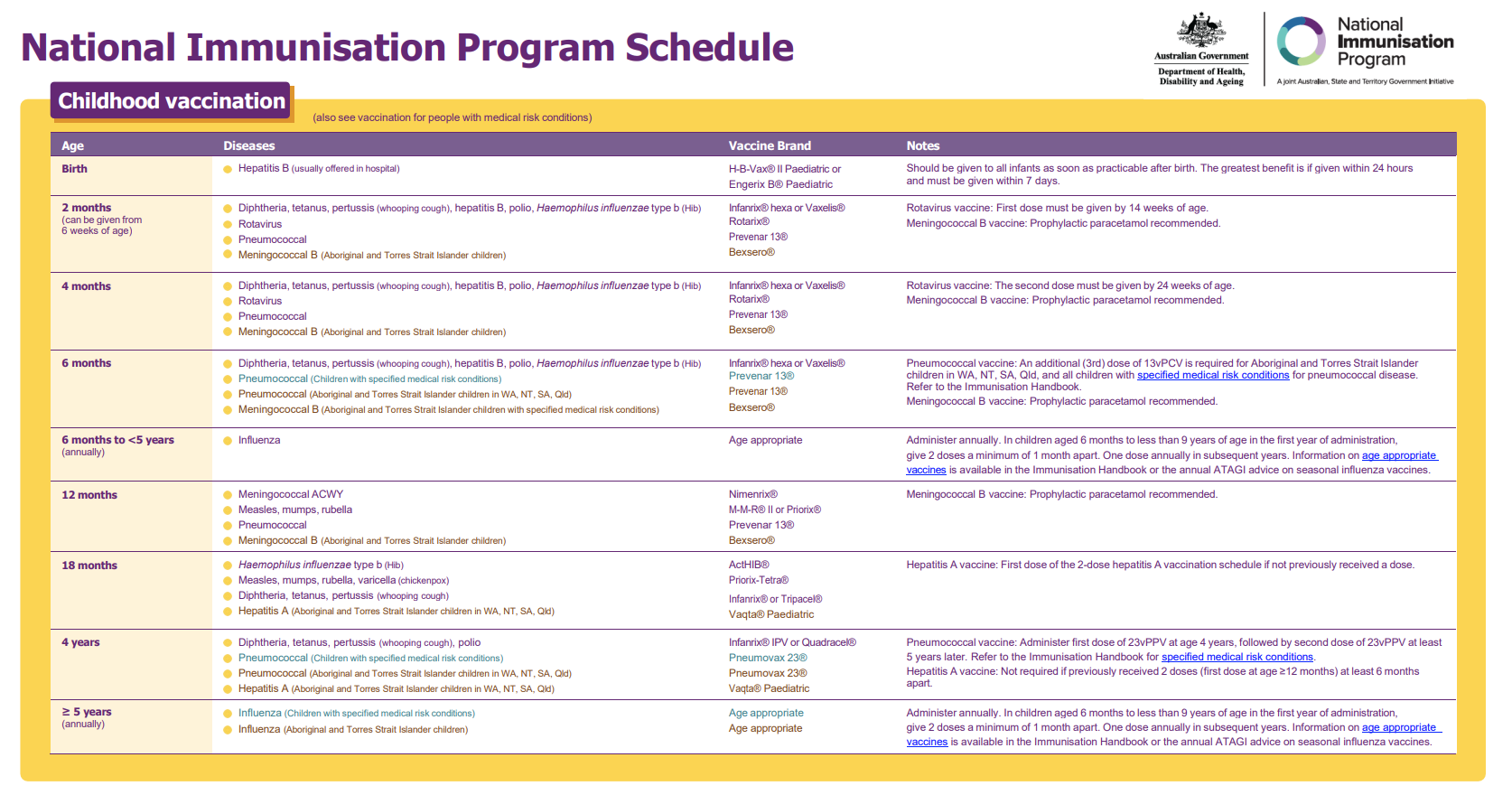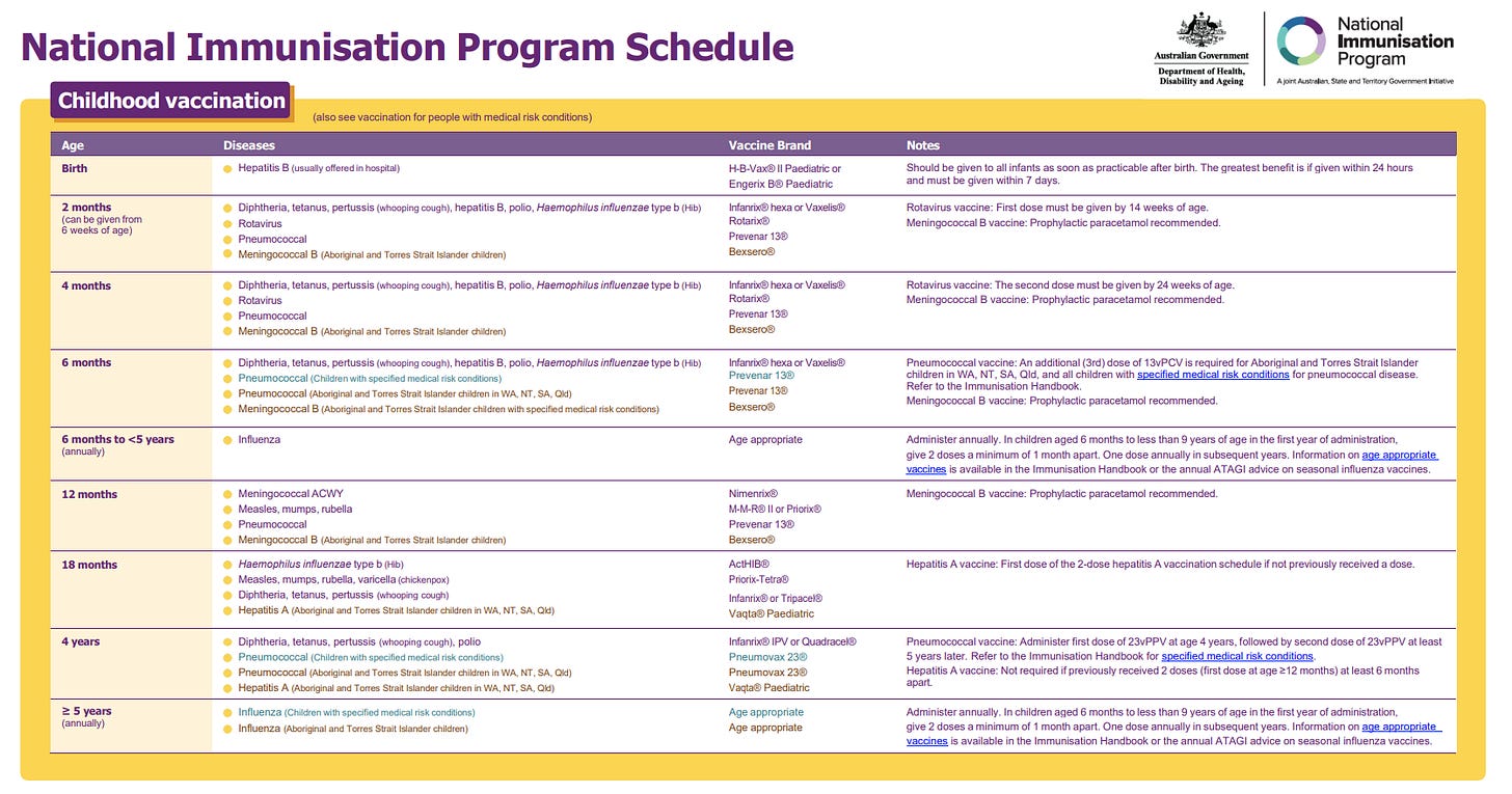 Source: Adapted from the Australian National Immunisation Program Schedule.